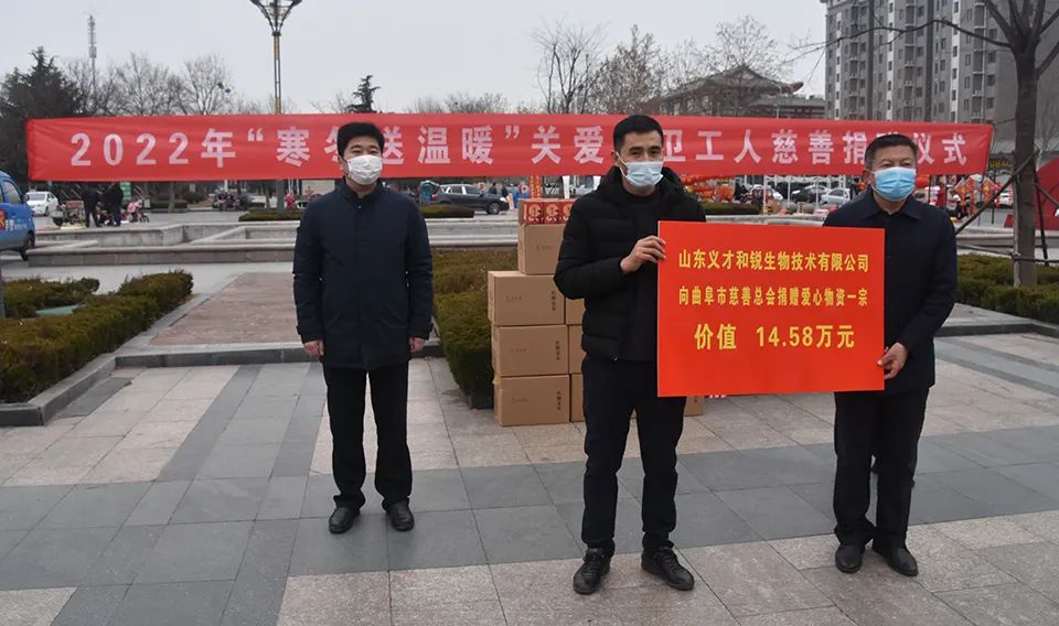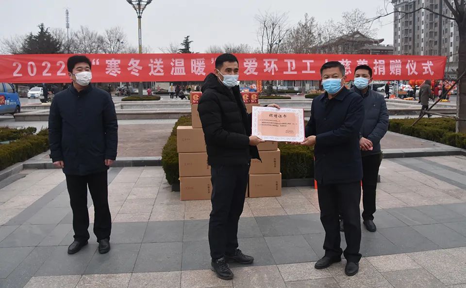 1月20日,曲阜市慈善總會聯(lián)合山東義才和銳生物技術(shù)有限公司開展“寒冬送溫暖,關(guān)愛環(huán)衛(wèi)工人”捐贈活動,市民政局副局長趙樹志同志、市環(huán)衛(wèi)處主任劉國慶同志、市經(jīng)濟開發(fā)區(qū)投資服務(wù)部副部長張振同志、山東義才和銳生物技術(shù)有限公司總經(jīng)理姜海超先生、市慈善總會工作人員,出席活動并為市環(huán)衛(wèi)工人代表發(fā)放捐助物資。